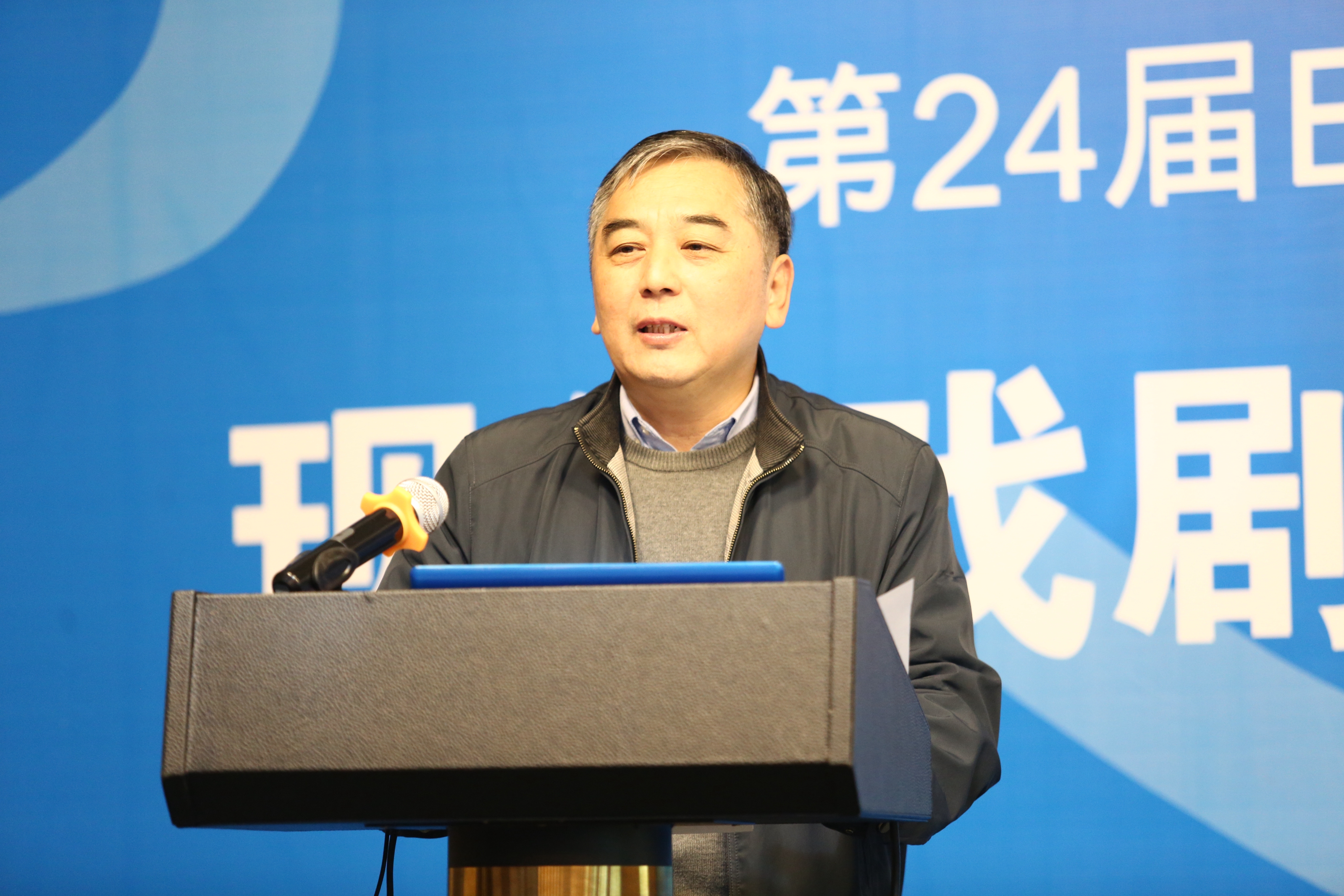 徐晓钟发表讲话。他说,20多年来,中国、韩国、日本三国戏剧艺术家一直在艺术上寻求一种共识,就是我们的三国的戏剧艺术,如何使自己民族的传统和现代有价值的戏剧文学相结合,如何构建我们自己的、民族的现代戏剧,让我们戏剧更好地与时代对话,与全球对话。23年以来,一方面是通过展示我们三国的戏剧舞台演出,另一方面就是通过戏剧艺术论坛,更好地交流我们三个国家的艺术家在这一方面的思索和实践。今天第24届BeSeTo(中韩日)戏剧节的国际学术研讨会的主题是“现代戏剧表演的国际视野和教育实践”,希望在我们的研讨会上,能够深刻地讨论、交流我们对这个主题的深刻思考。我想,这就是第24届BeSeTo(中韩日)戏剧节为我们三国戏剧艺术的发展,在我们美丽的杭州开出的又一支花,结的又一个果。