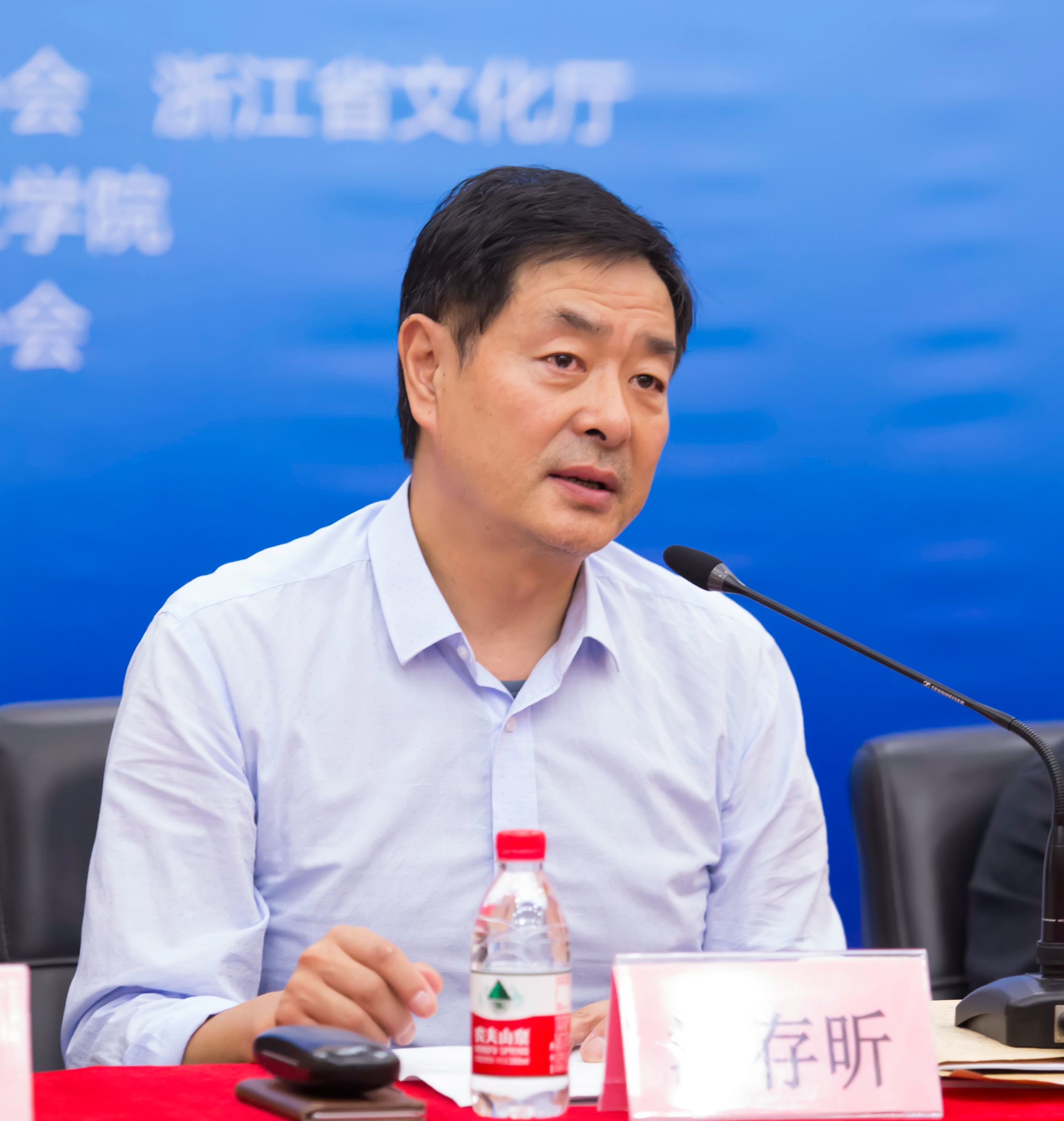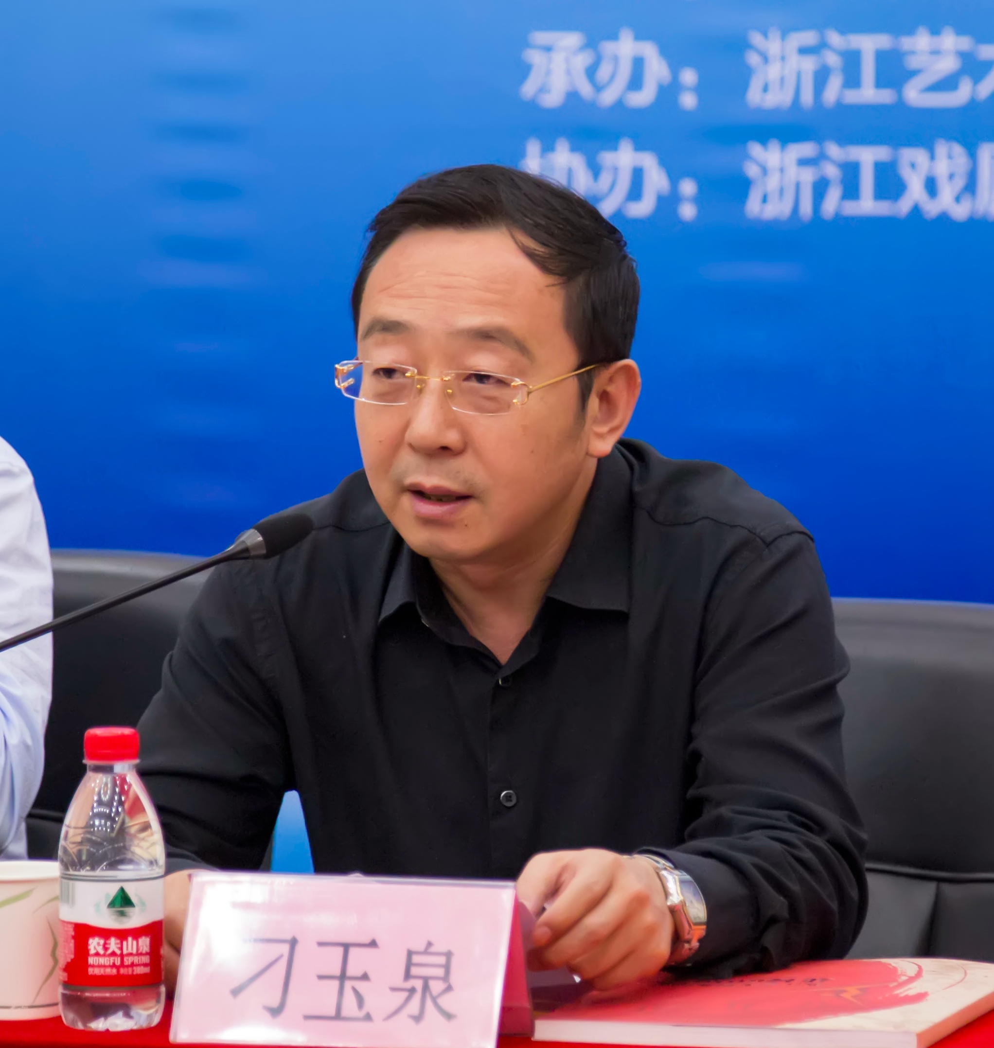 濮存昕在新闻发布会上发言。省文化厅副厅长刁玉泉致辞,浙艺院院长黄杭娟介绍本次戏剧节的筹备及演出情况。中国戏剧家协会外联部主任李华艺、浙江省文化厅艺术处处长薛亮出席。发布会由浙艺党委书记朱海闵主持。