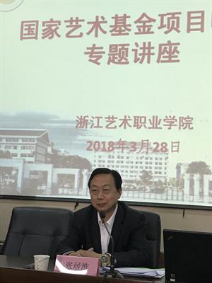 为切实做好2019年度国家艺术基金申报工作,3月28日,我校特邀国家艺术基金终评评委、国家一级编导、原安徽省演艺集团党委书记张居淮前来作国家艺术基金申报专题讲座。讲座在13号楼101会议室举行,各系部负责人、教研室主任、专业带头人、现任校创作委员会委员、骨干教师等全院59名教师听取了讲座。