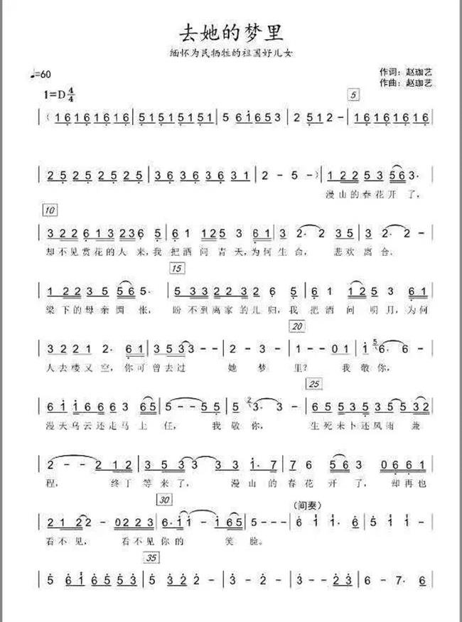“漫山的春花开了,却不见赏花的人来,我把酒问青天,为何生命悲欢离合。”歌曲《去她的梦里》旨在抚慰抗疫英雄们的母亲,以英魂入梦的方式,慰藉所有不幸带来的难以平复的伤痛。作品融入了东北民歌《摇篮曲》,以“守护”为主题,将母亲与孩子无法割舍的爱,表现得淋漓尽致,更把亿万民众对英雄的敬仰融入其中。