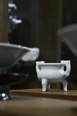 这次他所制作的几款炉形,都是按照传统瓷质香炉实物的残件或标本图片来作为参考,摹古为新。