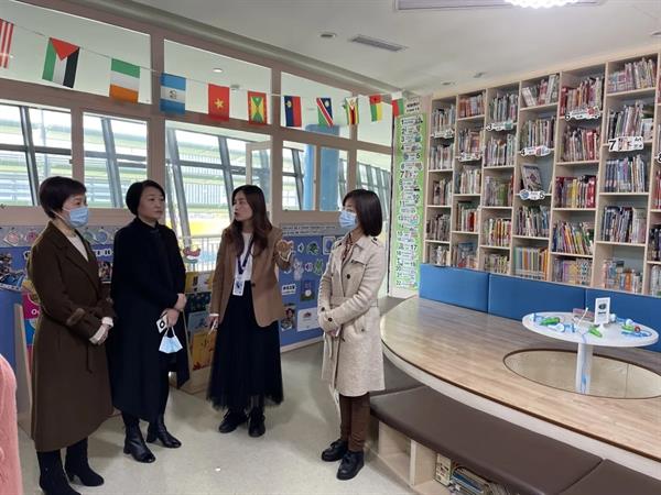 陈辉带领考察团参观了幼儿园教学区域、艺术教室、图书馆、木工坊等,详细介绍了幼儿园的发展历程与课程特色。