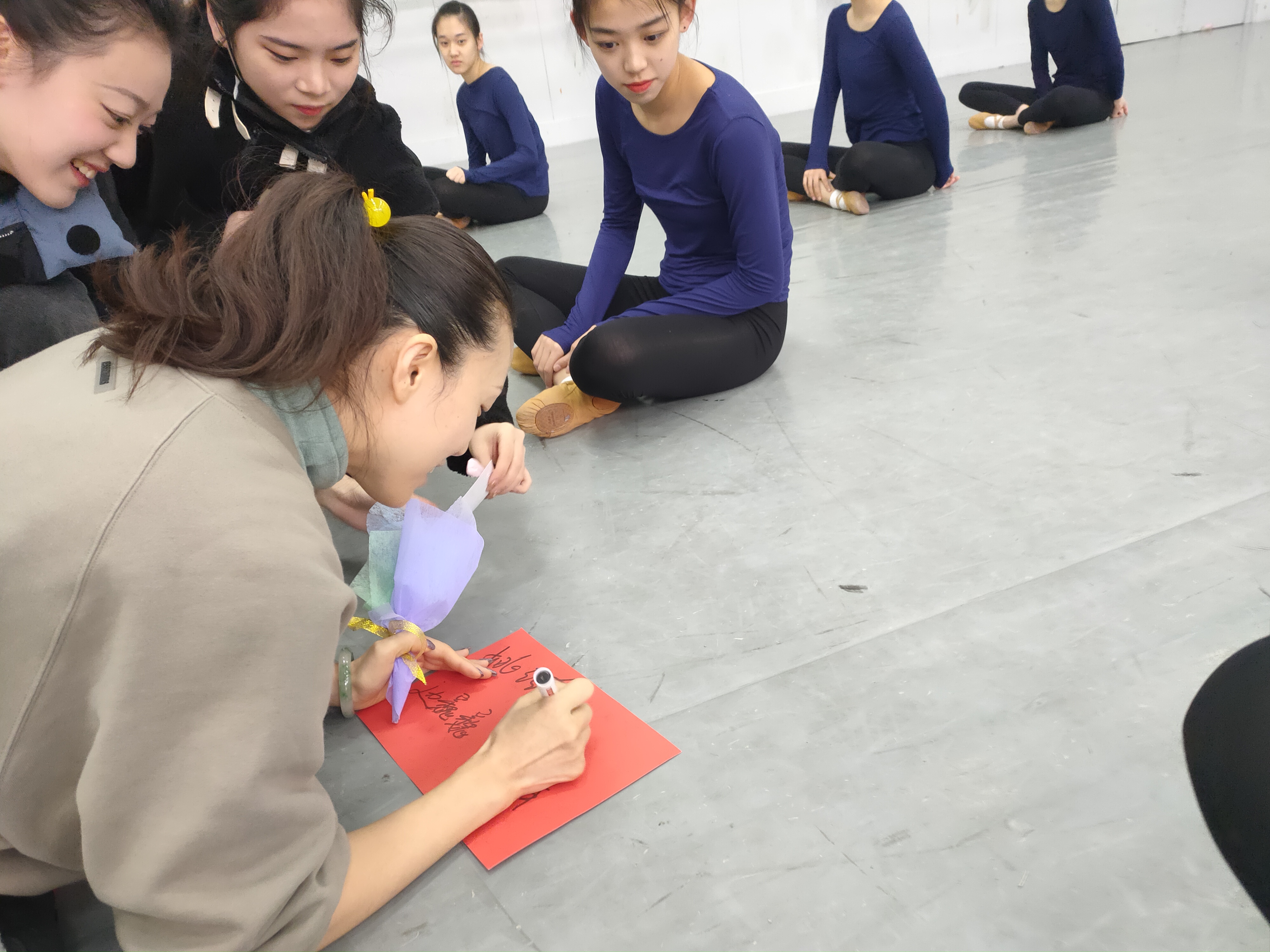 38日清晨,同学们将一朵朵五颜六色的花束献给平日里辛勤浇灌艺术之花的老师们,这是一种爱的回馈。老师们接过“鲜花”,露出开心的笑容,她们在签名簿上签字,留下了温暖的印记。