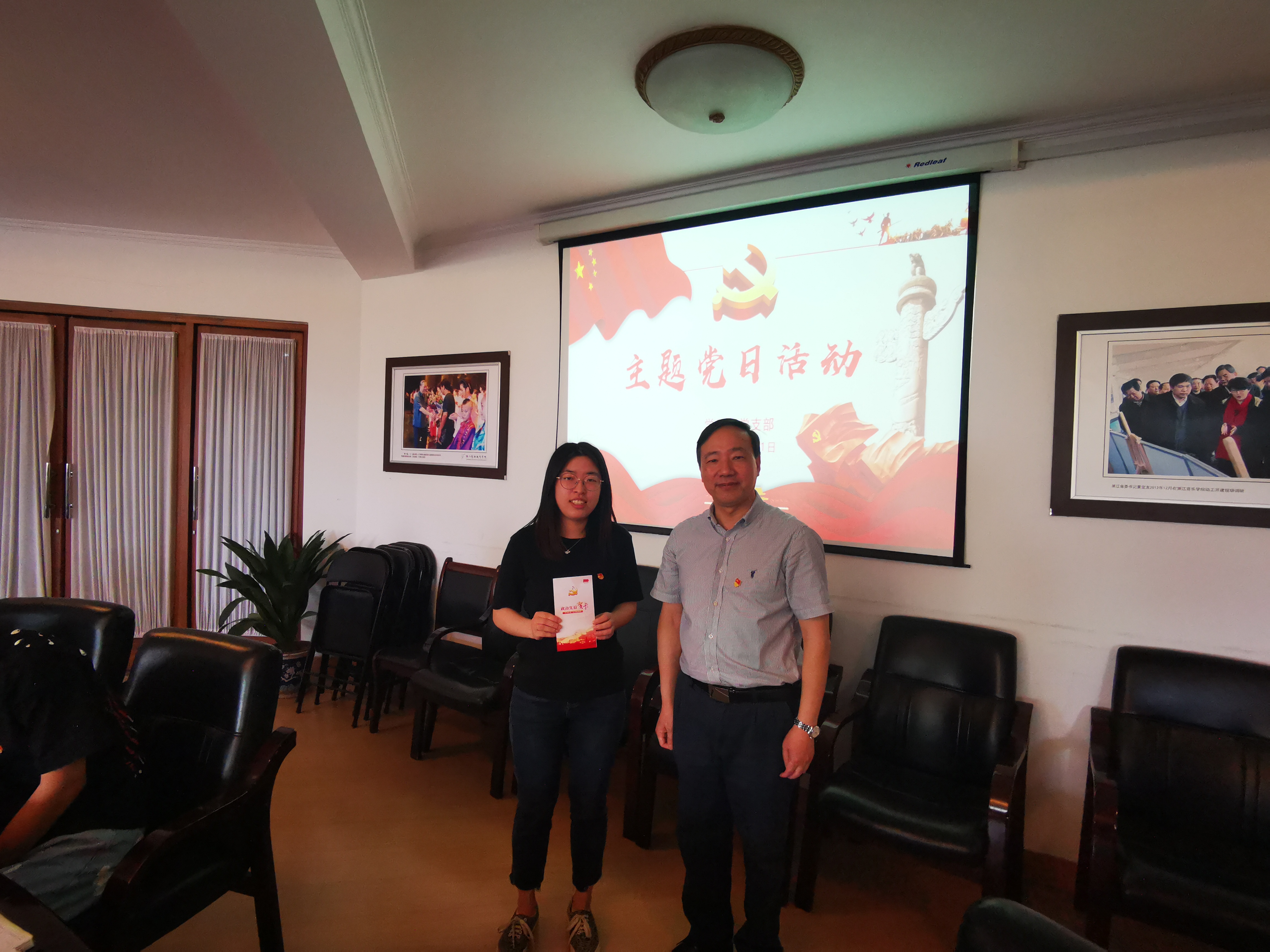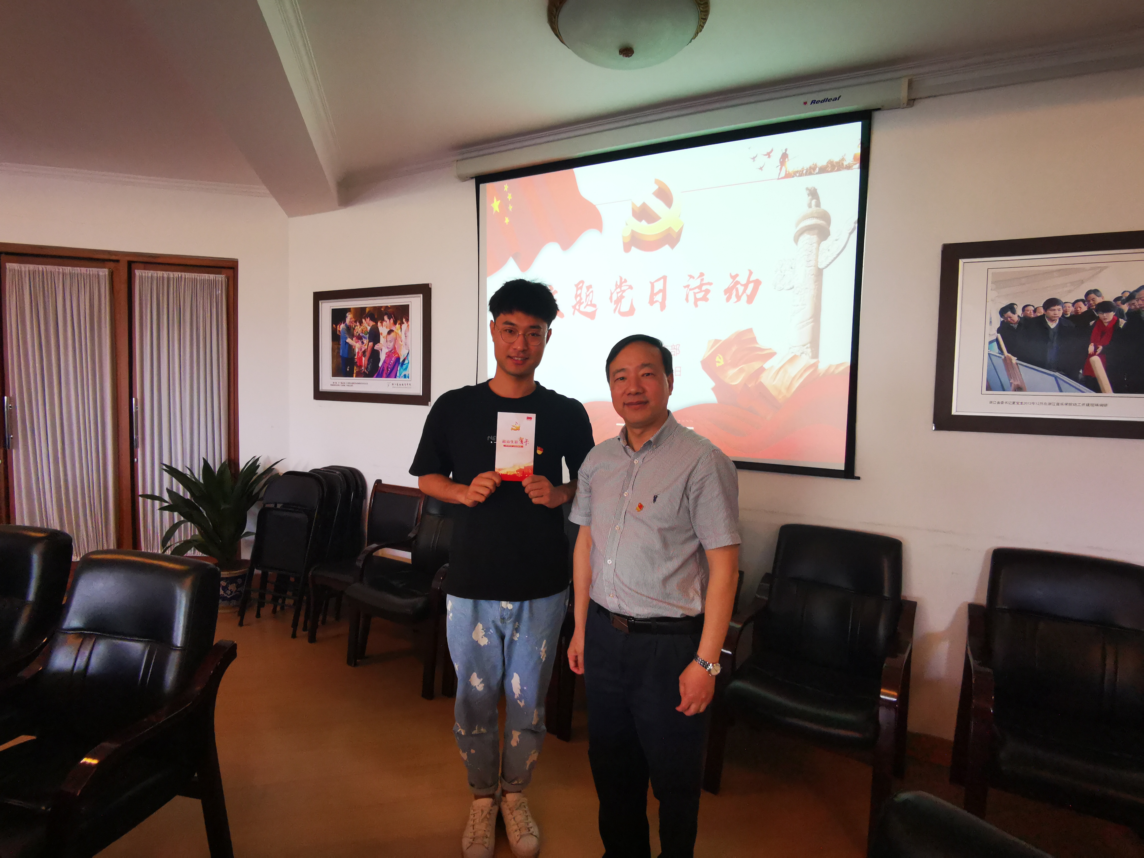 上课之余,全体党员为5月政治生日的4位党员集体过生日,夏开堂为党员同志送上了“政治生日”贺卡和“生日”寄语。4位党员分别分享了自己入党日的重大党史事件,并结合自身实际工作,分享了此次党课的学习体会。大家表示要传承、发扬“长征精神”,汲取长征精神的惊人毅力、坚定信念、吃苦耐劳的决心和大无畏的精神,以强烈的事业心和责任感努力做好学生工作,为浙艺发展贡献自己的一份力量。