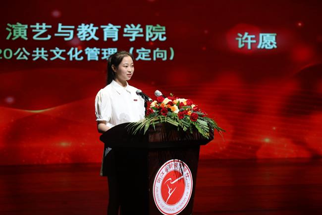 3位活跃在教学、学生管理工作一线的优秀教师和辅导员代表李东雷、孙国虎、林慧分享了教育教学工作经验;演艺与教育学院2020级公共文化管理(定向)班学生许愿作为学生代表作发言,表达了对老师的感激之情。