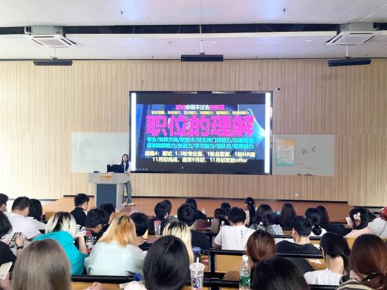 后金鸽与现场同学进行了交流互动。她表示,近几年国内在校毕业生竞争激烈,鼓励同学们抓住机会参加校招。同时,也希望同学们合理安排学习时间,重视专业基础能力的培养,多掌握一些新的专业技术,增加自身职业竞争力。